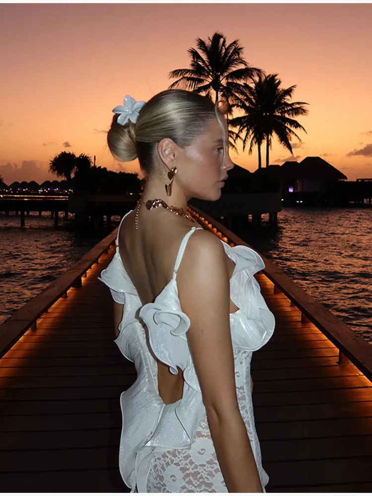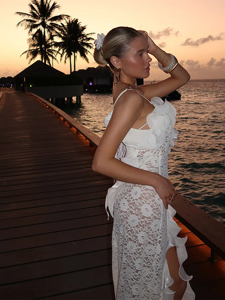 Chic Lace Hollow Off Shoulder Slim Waist Long Dress